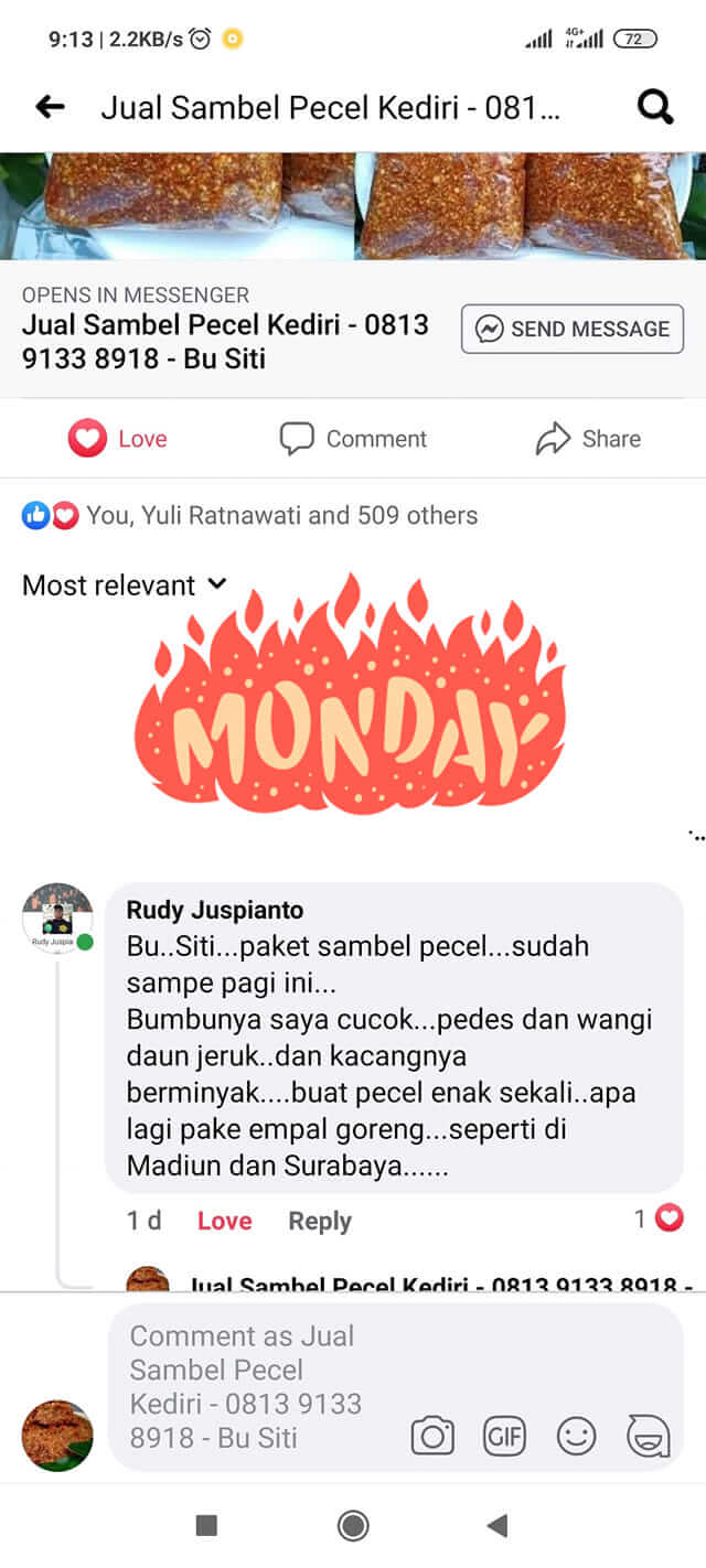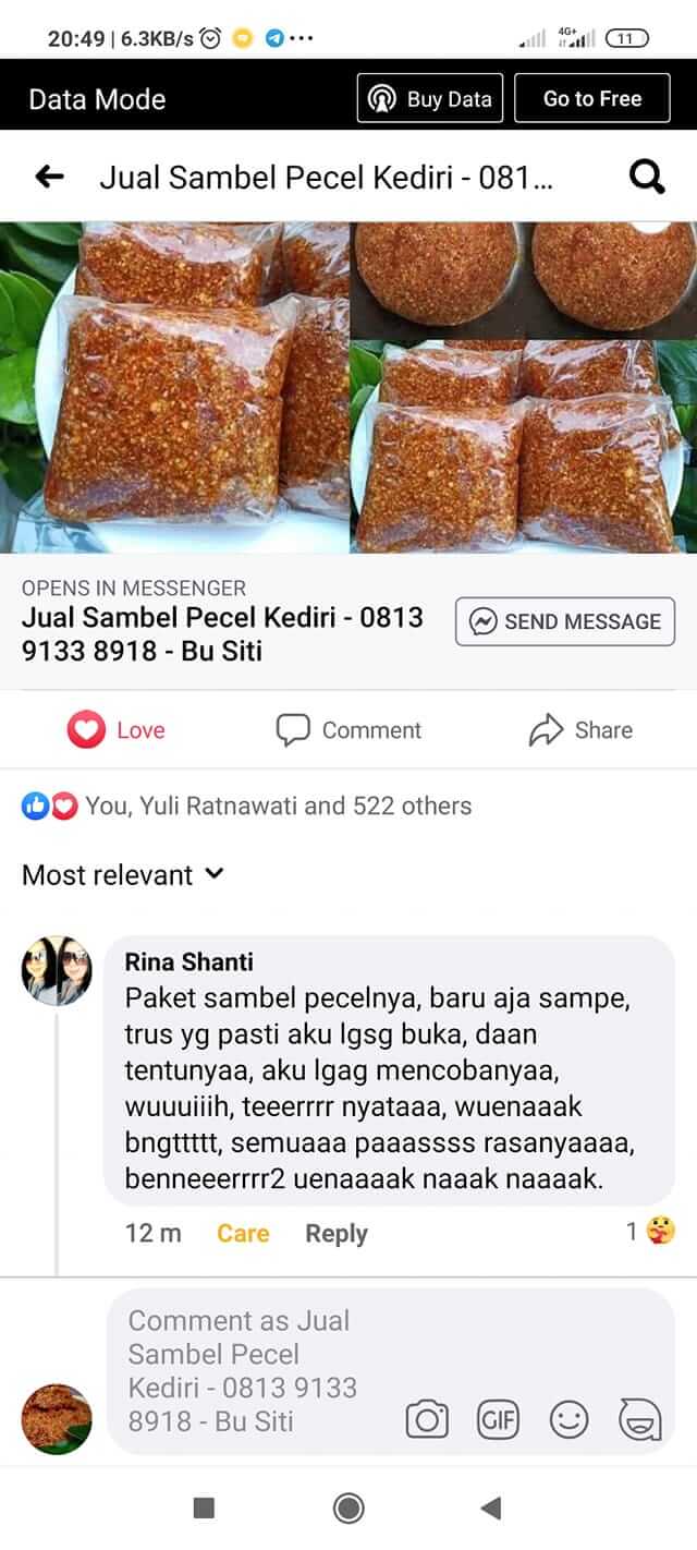 Sambel pecel kediri bu siti terkenal sedap dan mantapnya. rasanya pas sedap dan gurih manis nya. untuk yang penasaran atau yang lagi merantau. kangen pecel kediri silakan di coba. untuk rasa silakan di buktikan sendiri ya.:)